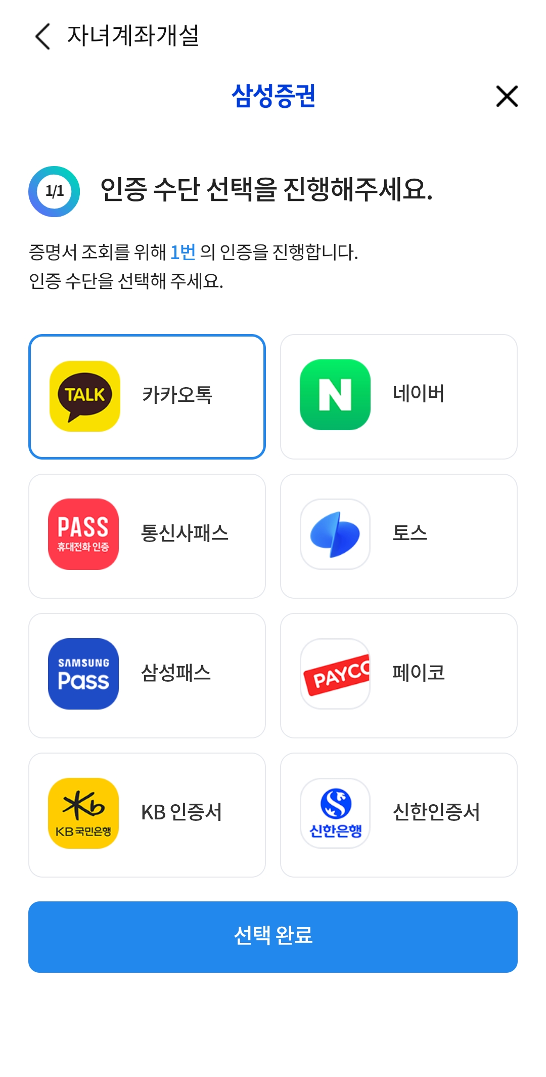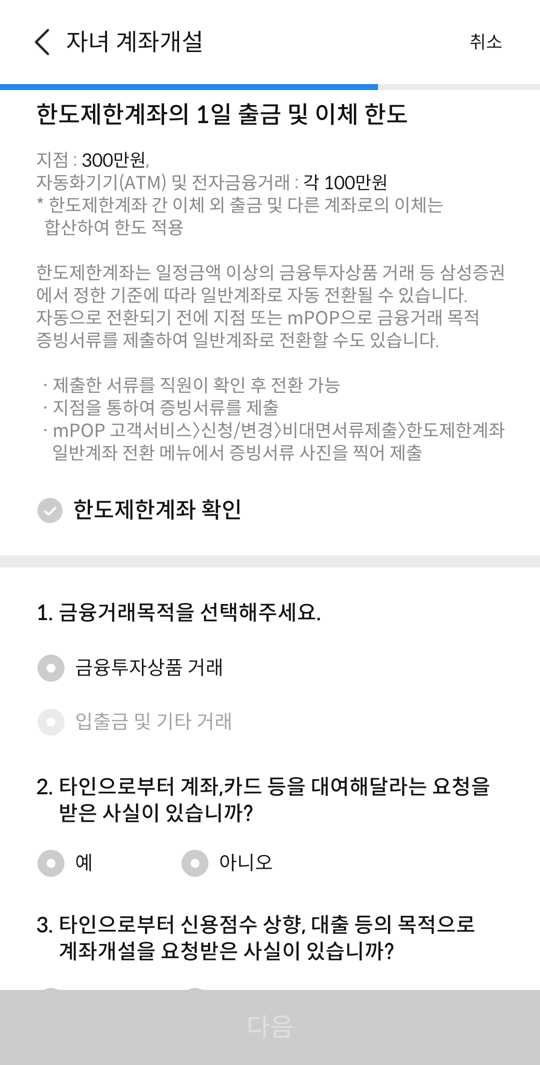 삼성증권 어플로 들어가서 고객서비스>계좌개설>자녀계좌개설로 쭉쭉 들어간다